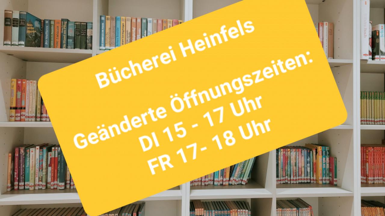 September, 2025 Geänderte Öffnungszeiten Wir sind für Sie da, amDienstag15:00-17:00UhrFreitag17:00-18:00Uhr An Feiertagen bleibt die Bücherei geschlossen.